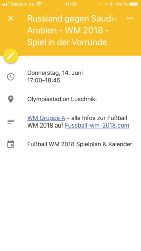- Der WM 2018 Spielplan als ical und Google Kalender